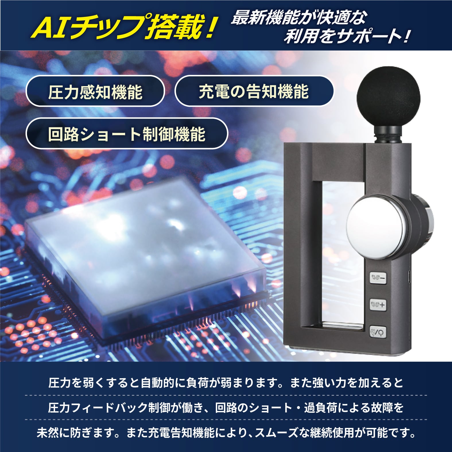◇AI(人工知能)搭載…各種フィードバック制御が働き、過電圧、過充電、家電にありがちな短絡(ショート)を防ぎます。力を入れすぎてもそれを感知して出力の調整を行い、機器に過剰な負荷をかけないようにAIが作用します。もちろん振動の強さは低下しません。